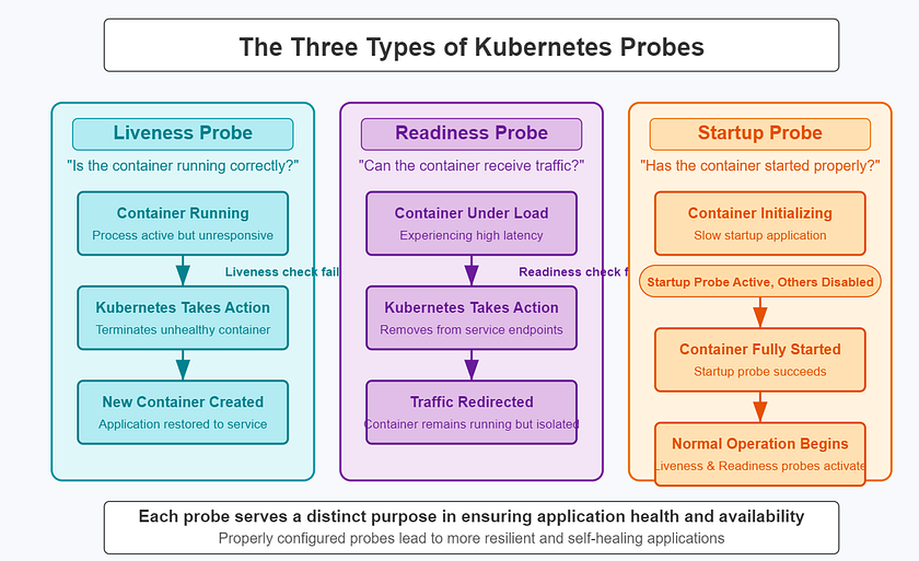 Kubernetes提供了三种不同类型的健康检查探针,每种都在容器的生命周期中扮演着特定的角色。